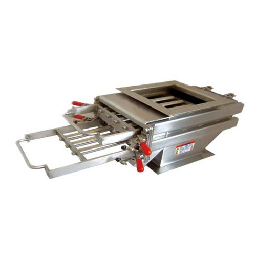 易清理箱式除铁器采用超强磁棒与特殊抽屉式拉门组合,不需要工作人员清理磁棒,只需抽拉和推进即可一次性全部清理磁棒。 大大提高效率和减少工作强度,由于清理便捷,可以适当的增大清理的次数,以便**的发挥磁棒的除铁效果,独特设计的磁棒刮环可以重复循环使用,刮去的杂质可以通